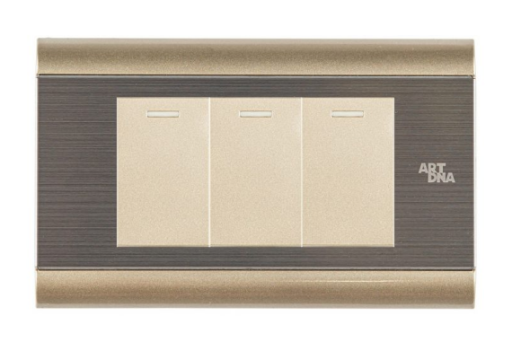 ModelC9-K03A Miêu tảCông tắc ba, 1 chiều Đặc điểmInox viền nhựa vàng Màu sắcMặt hạt màu vàng Vật chấtMặt inox viền nhựa vàng-Nhựa PC chống cháy+đế thép Kích thước120*73mm Chất liệu mặtInox viền nhựa vàng Khung đếĐế thép chữ nhật dày 1.2mm