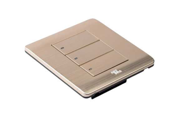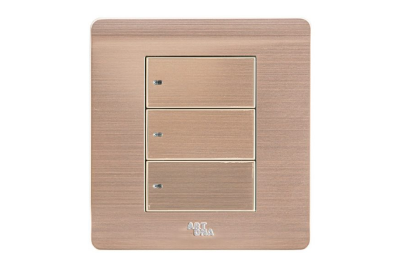 ModelA66-BK3A Miêu tảCông tắc led ba, 1 chiều Đặc điểmNhôm vàng Màu sắcVàng Vật chấtAluminum Kích thước86 x 90mm Chất liệu mặtNhôm Anode vàng Khung đếĐế thép sơn tĩnh điện 1.2mm