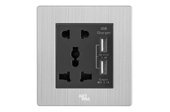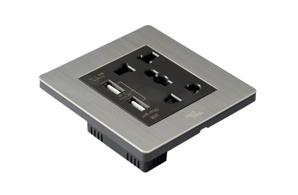 ModelA69-C06E24 Miêu tảỔ cắm đa năng + 2 cổng sạc USB Đặc điểmInox SUS 304 dày 1.2mm Màu sắcXước Hairline phủ Nano Vật chấtStainless Steel Kích thước86x90mm Chất liệu mặtInox SUS 304 Khung đếĐế thép sơn tĩnh điện dày 1.2mm