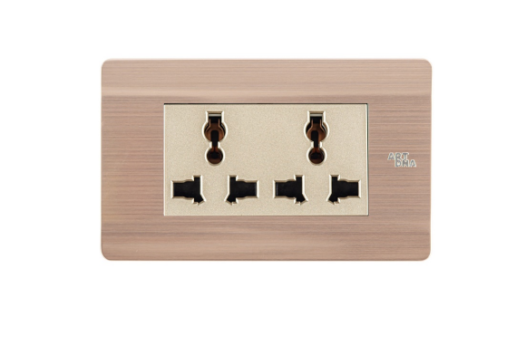 ModelA85-2MC03 Miêu tảỔ cắm đôi Đặc điểmNhôm Anode Vàng Màu sắcMặt hạt màu vàng Vật chấtNhôm Anode Kích thước120x73mm Chất liệu mặtNhôm Anode Khung đếĐế thép chữ nhật sơn tĩnh điện dày 1.2mm