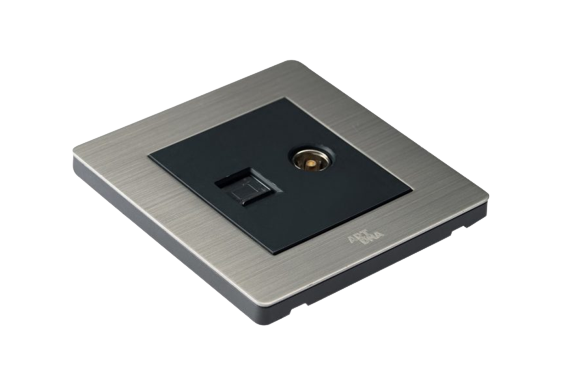 ModelA69-E0203 Miêu tảỔ cắm mạng + Tivi Đặc điểmInox SUS 304 dày 1.2mm Màu sắcXước Hairline phủ Nano Vật chấtStainless Steel Kích thước86x90mm Chất liệu mặtInox SUS 304 Khung đếĐế thép sơn tĩnh điện dày 1.2mm