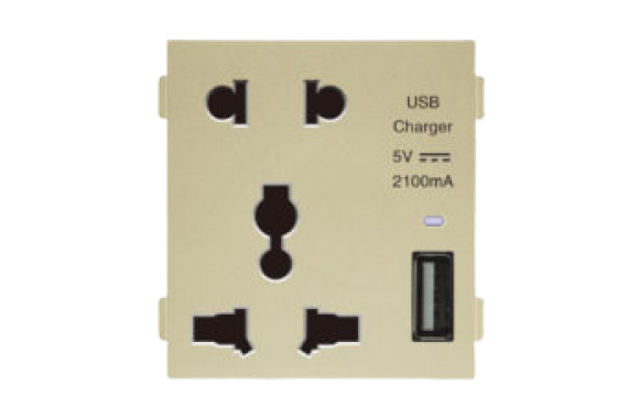 2P & 3P USA+EU socket with 2.1 USB charger module, golden