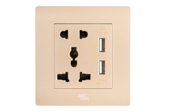 ModelA38V-C06E24 Miêu tảỔ cắm đa năng +2 cổng sạc USB Đặc điểmNhựa PC Vàng Màu sắcVàng Vật chấtNhựa PC Chống cháy + Đế thép Kích thước86x90mm Chất liệu mặtNhựa PC Chống Cháy Khung đếĐế thép sơn tĩnh điện 1.2mm