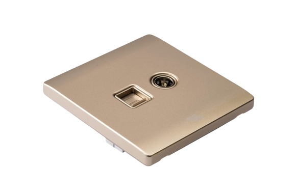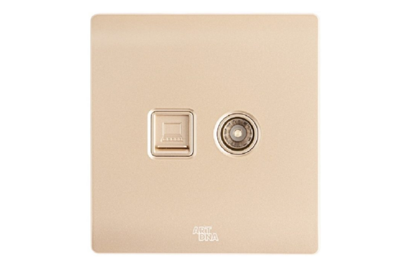 ModelA38V-E0203 Miêu tảỔ cắm mạng + Tivi Đặc điểmNhựa PC Vàng Màu sắcVàng Vật chấtNhựa PC Chống cháy + Đế thép Kích thước86x90mm Chất liệu mặtNhựa PC Chống Cháy Khung đếĐế thép sơn tĩnh điện 1.2mm